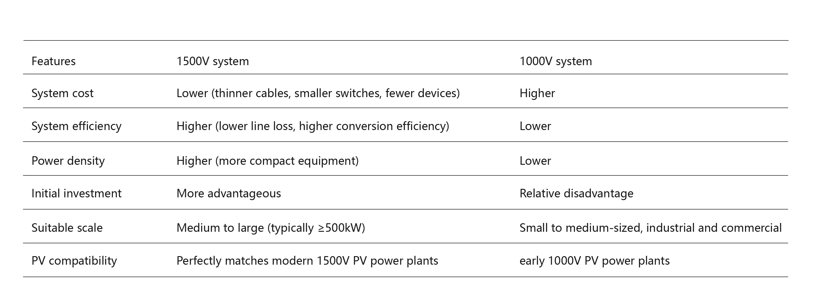Early 1500V technology was mainly used in large-scale ground-mounted photovoltaic power plants, and its reliability has been fully verified. Today, the entire supply chain—from photovoltaic modules, combiner boxes, DC switches to PCS and battery systems—is mature enough to support the 1500V platform, forming a complete ecosystem that makes procurement and maintenance very convenient.